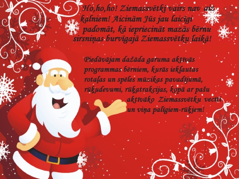 -30 min pasākums (spēles+rotaļas). Vada Ziemassvētku vecītis un rūķis.